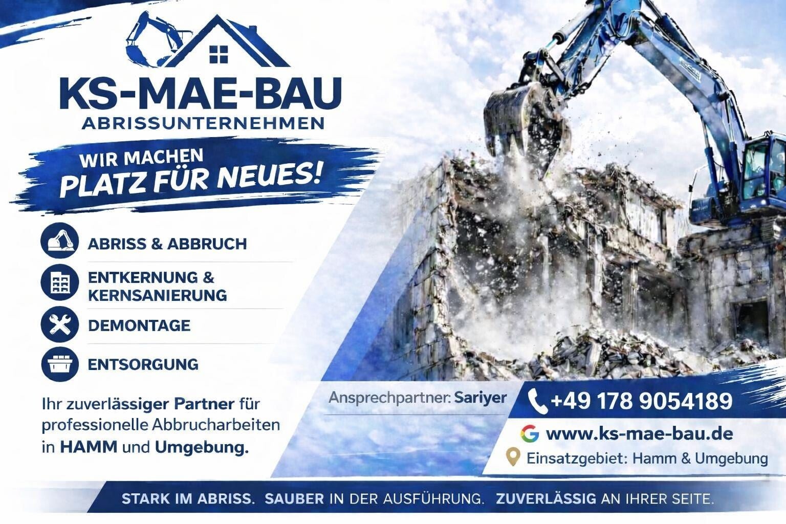 Wir bieten professionelle Demontagearbeiten für private und gewerbliche Objekte an. Dabei übernehmen wir den fachgerechten Rückbau von Bauteilen, Anlagen und Einrichtungen - sauber, sicher und effizient. Unsere Arbeiten erfolgen strukturiert und termingerecht, abgestimmt auf Ihre individuellen Anforderungen.